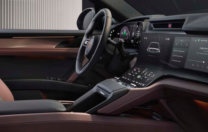 The interior also plays a major role in the Cayenne Electric’s early popularity. Porsche redesigned the cabin with a more modern, tech-forward approach, including a curved digital instrument cluster and an updated central display that anchors the dashboard. A passenger-side touchscreen is available, giving the front passenger control over media and navigation without distracting the driver. The gear selector moves to the dashboard to free up center-console space, while physical climate controls sit below the main screen for easier access. The layout reflects a blend of Taycan-inspired minimalism and Cayenne-level usability.